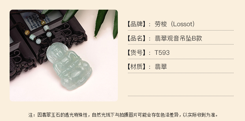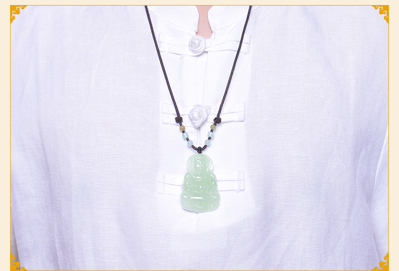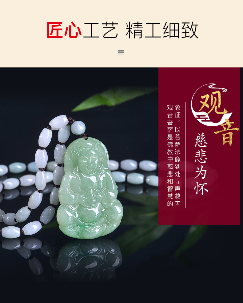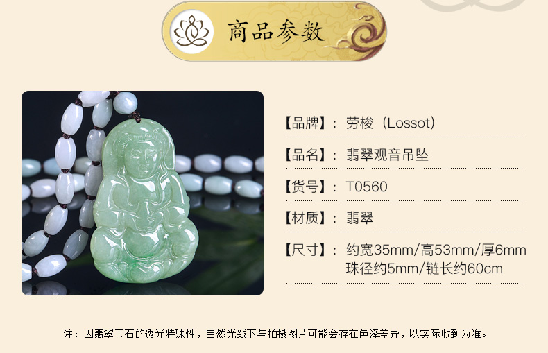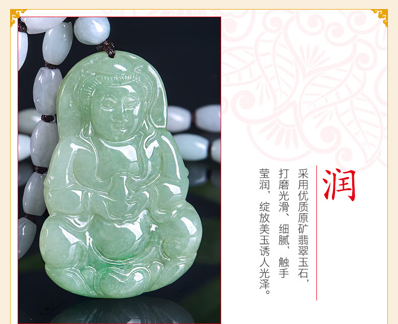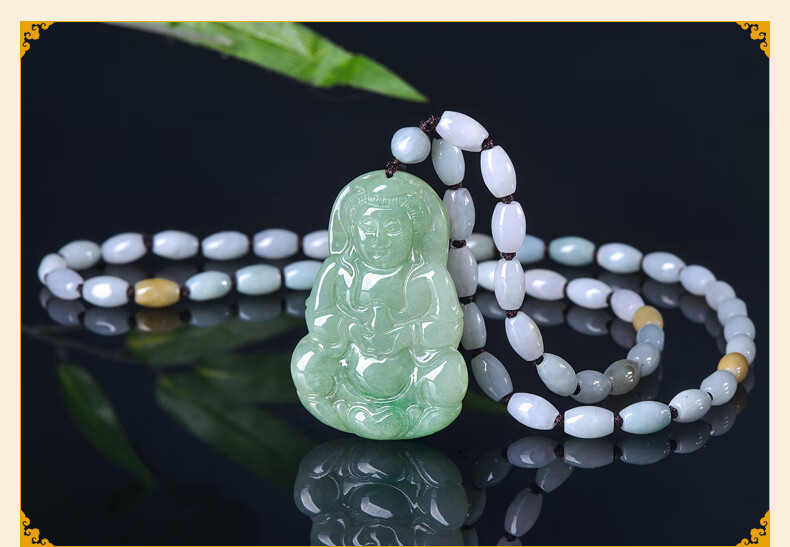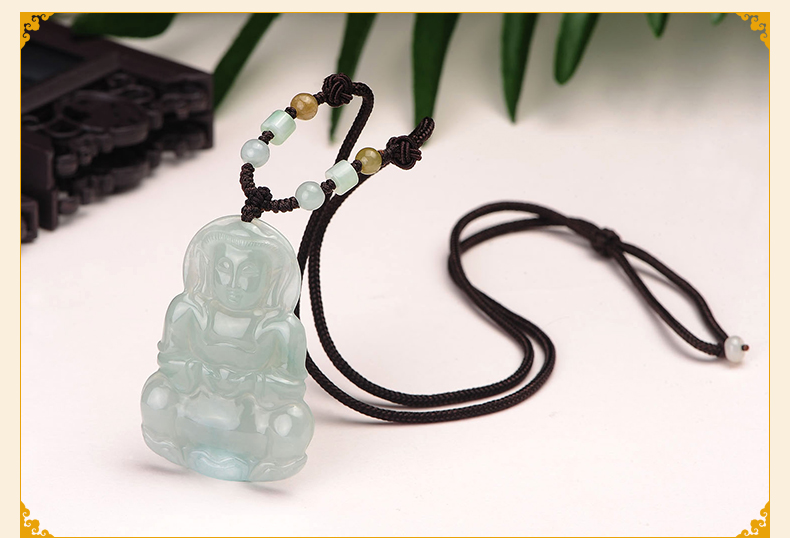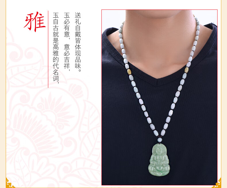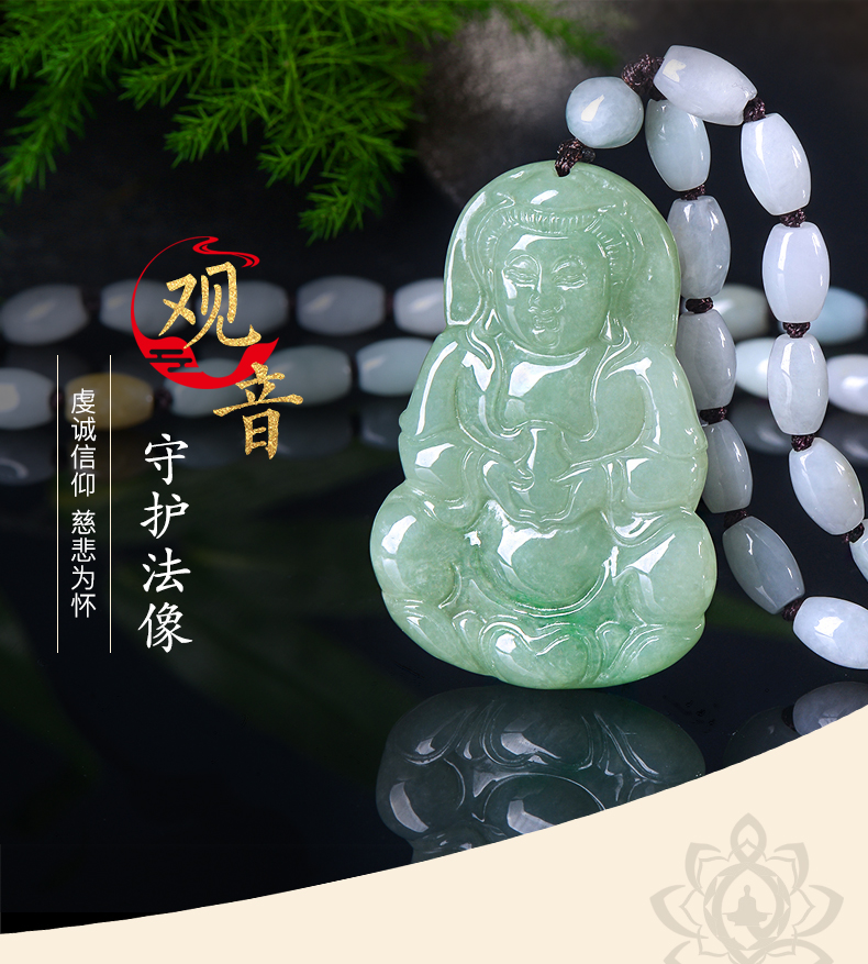 Lossot玉观音翡翠吊坠项链男款玉石玉坠玉佩佛珠套链小车挂