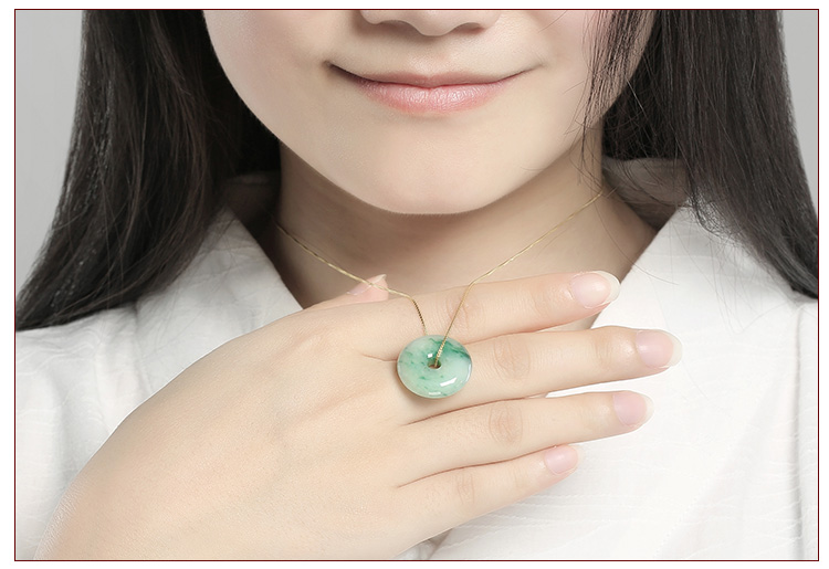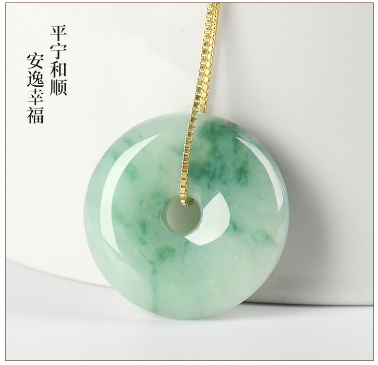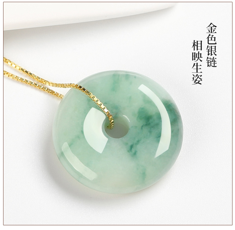 凤禧珠宝翡翠平安扣吊坠玉坠玉佩女款925银项链生日节日礼物