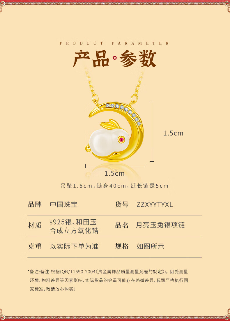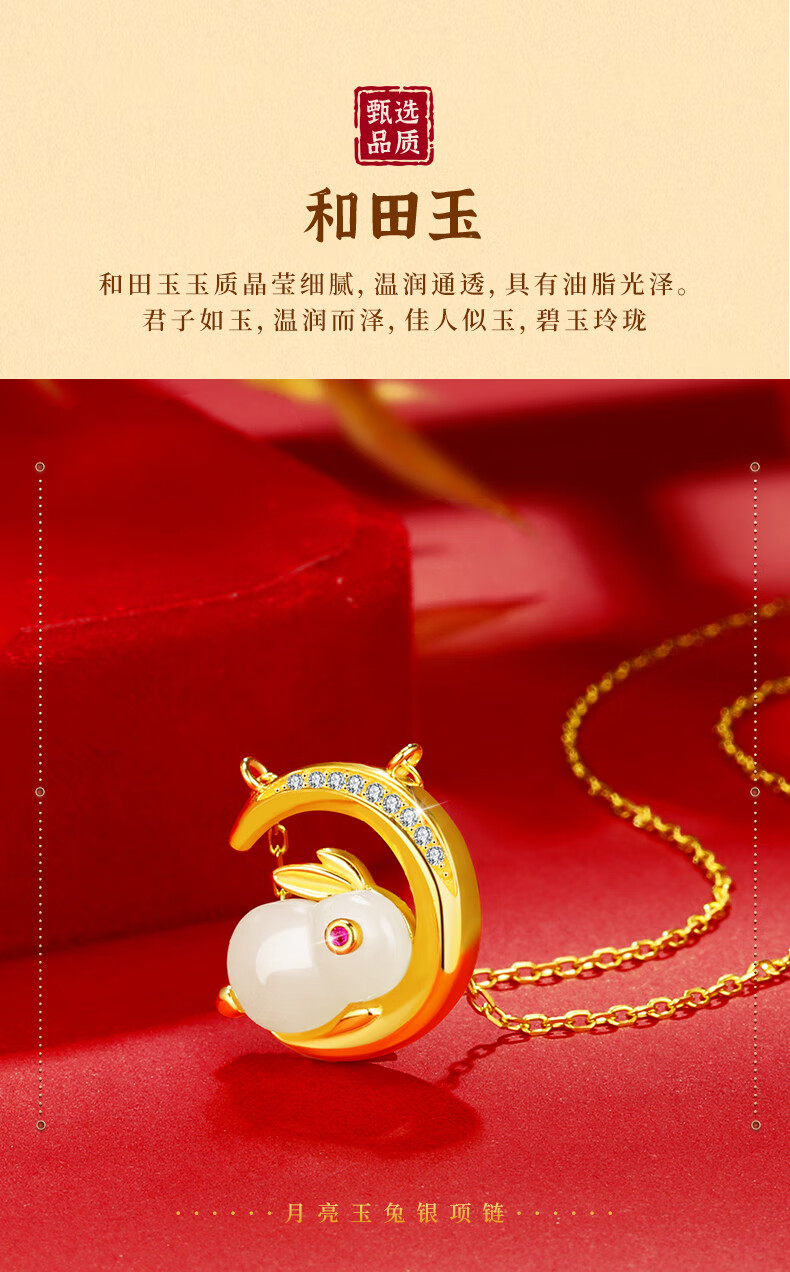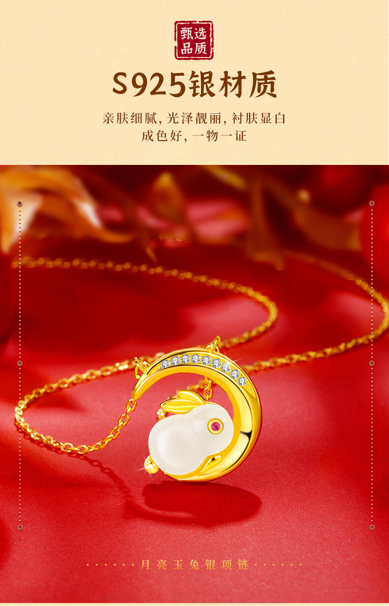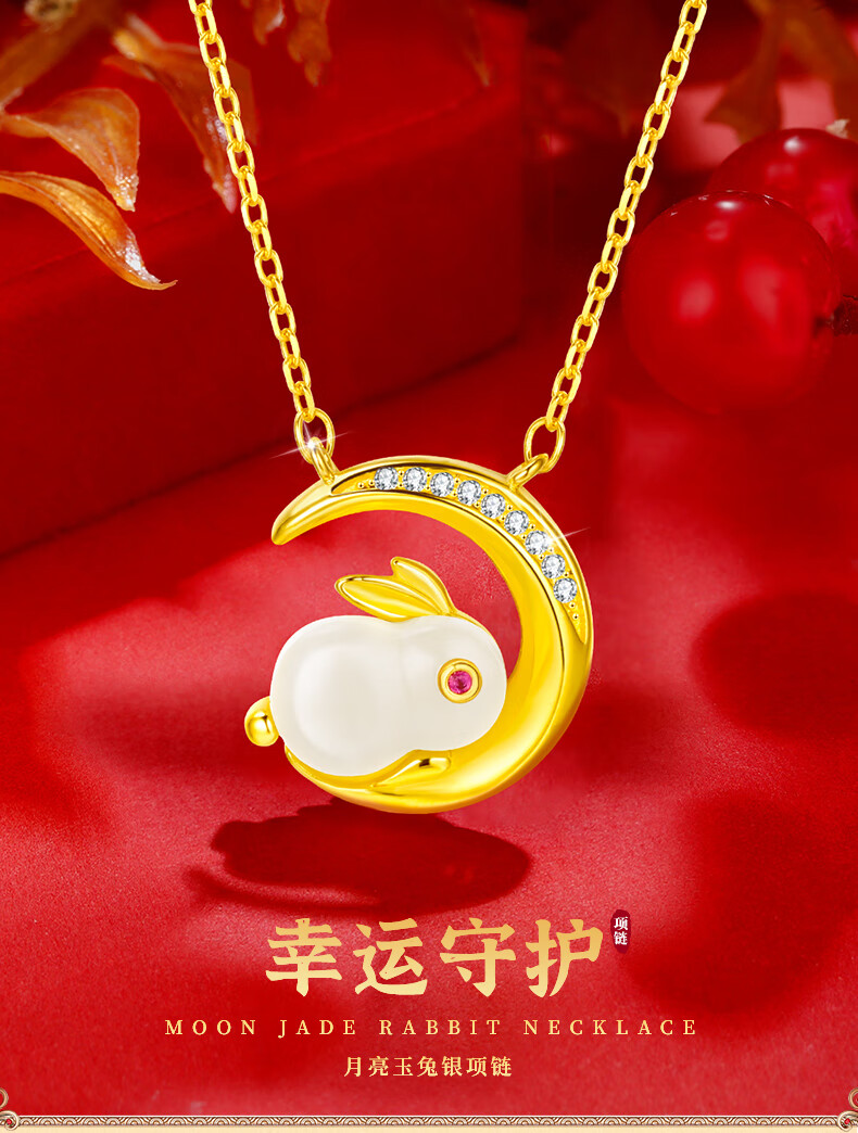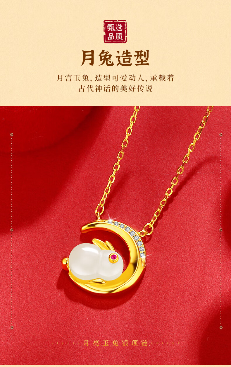 珍尚银【中国黄金】和田玉兔银项链女生日情人节礼物送女友老婆时尚饰品