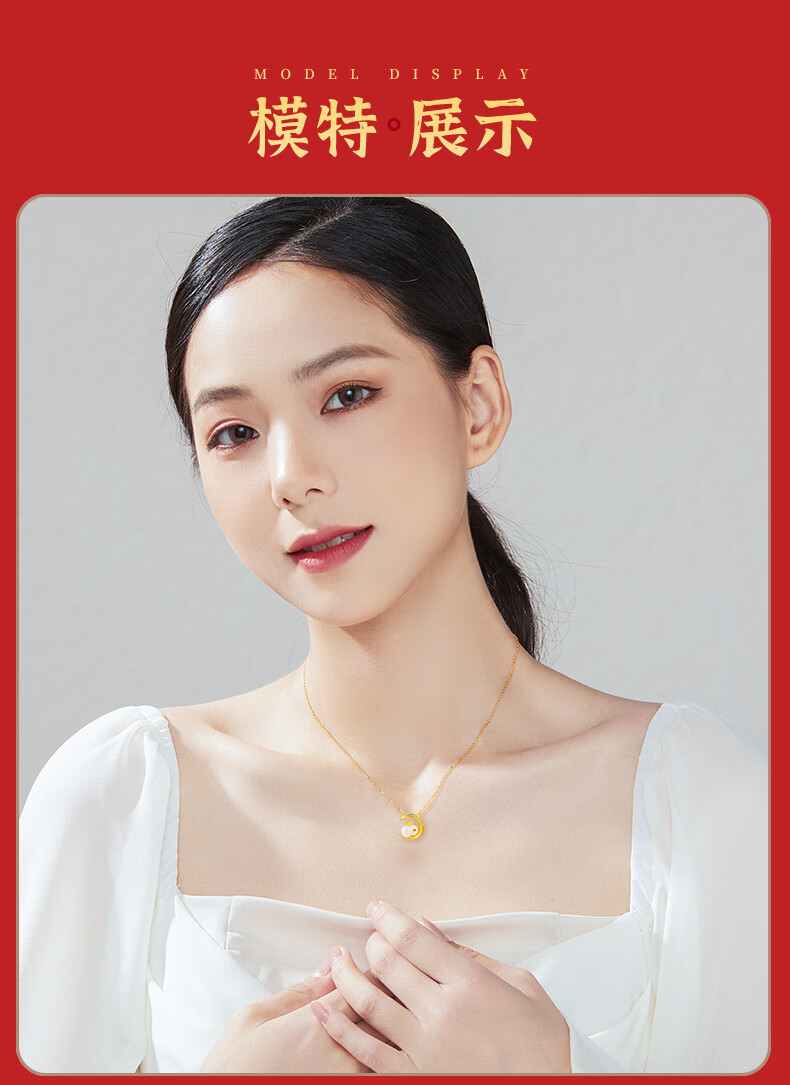 中国珠宝(Sinogem)银项链月兔女款时尚轻奢锁骨链送女友老婆生日礼物玫瑰礼盒