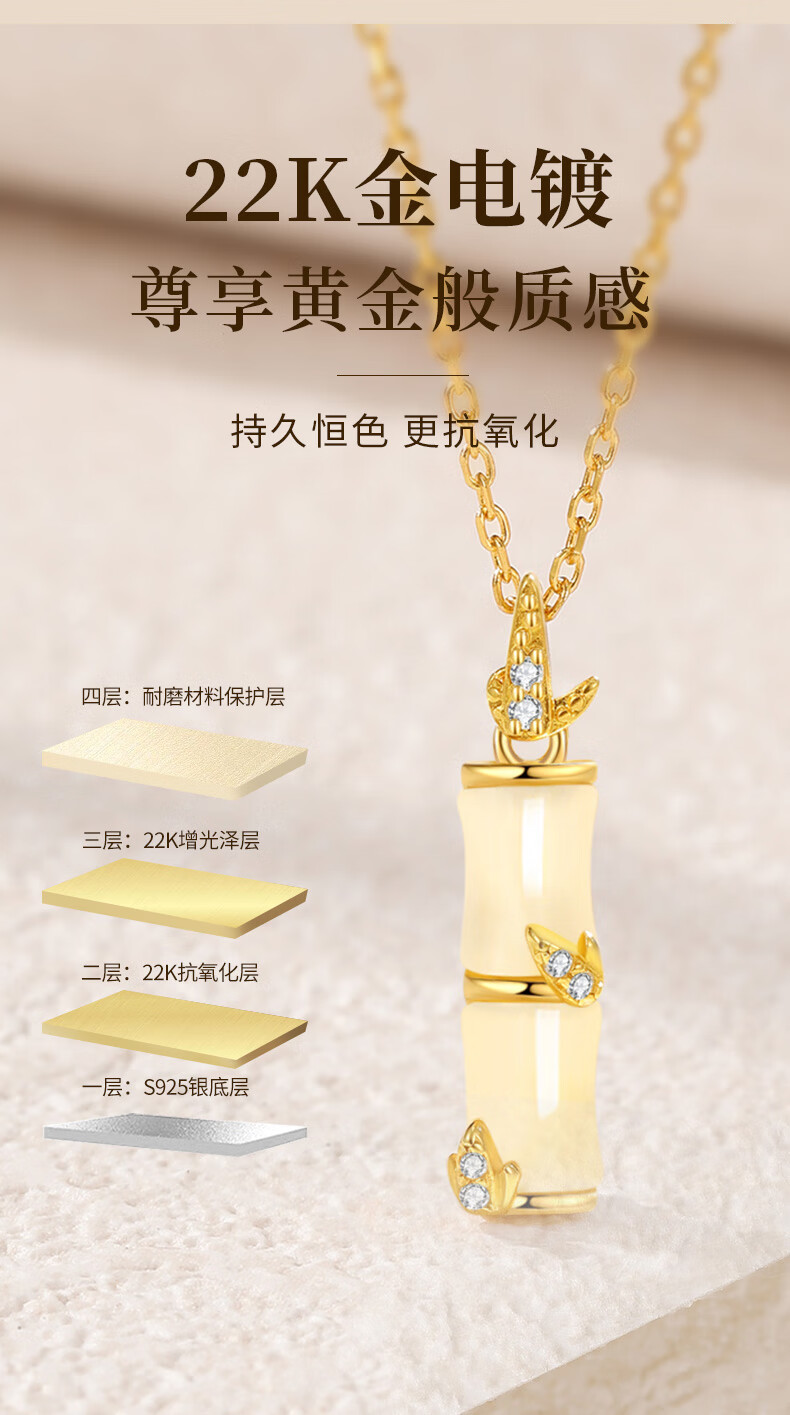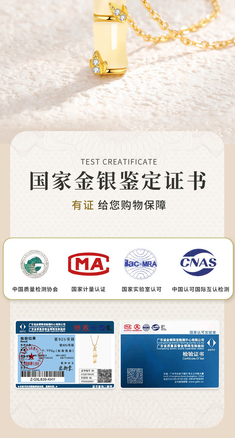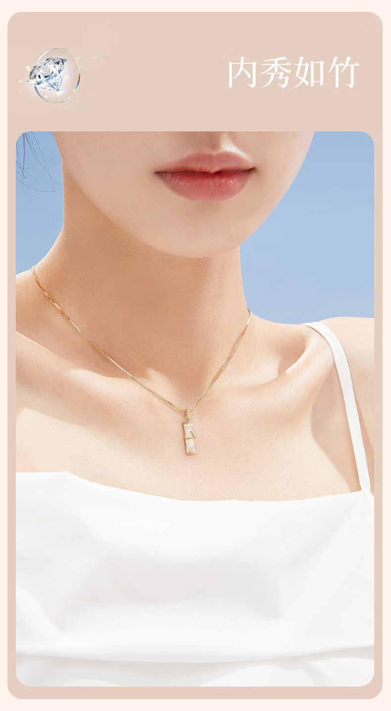 珍尚银银项链女士锁骨链吊坠生日礼物女结婚纪念日送女友老婆时尚银饰品