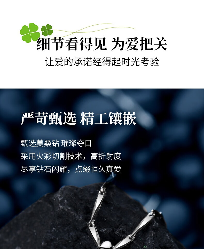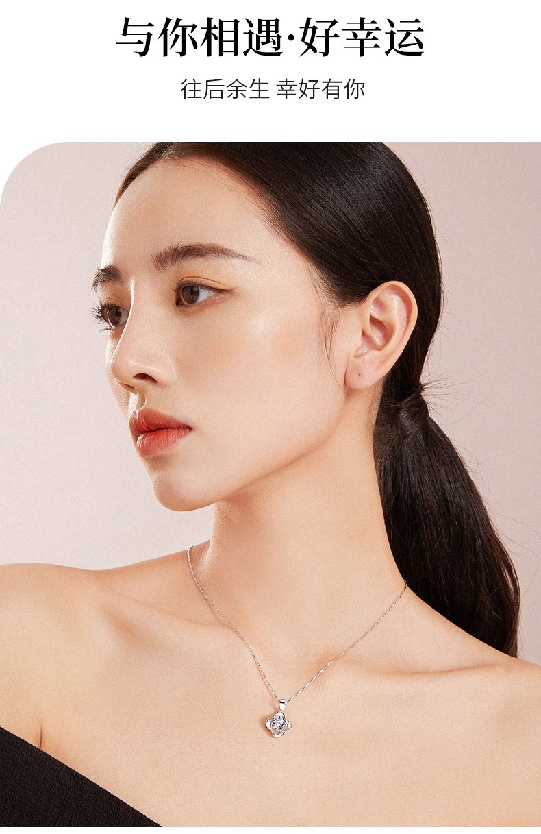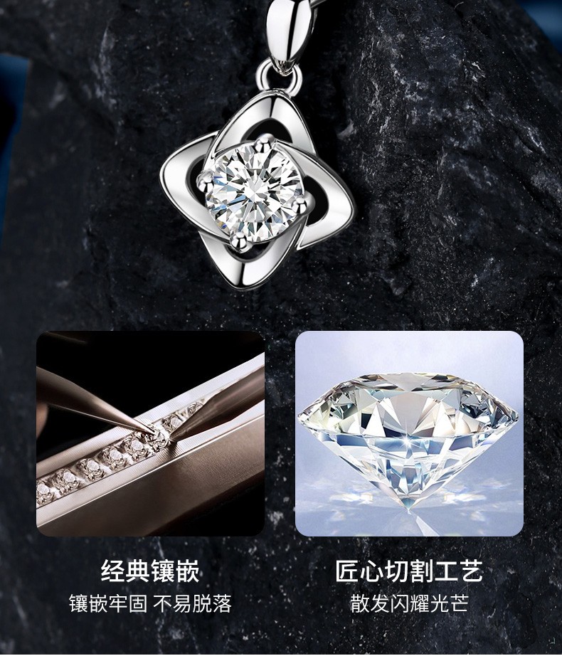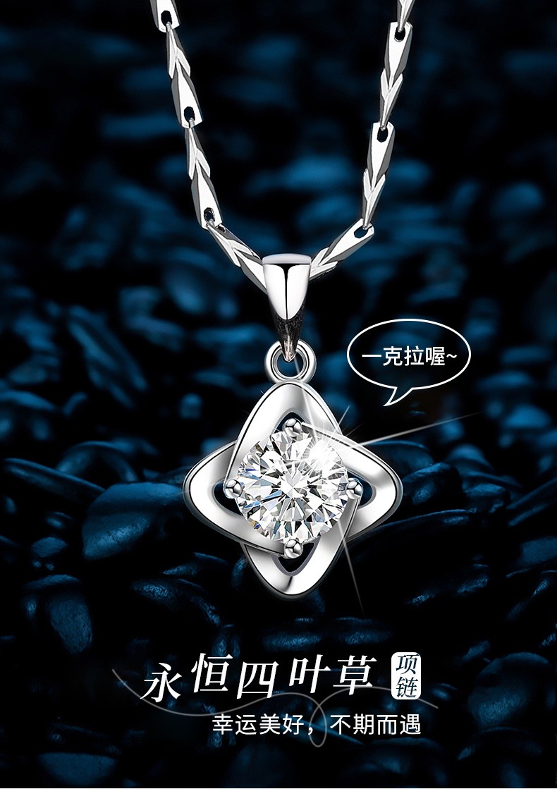爱心东东恋晴足银四叶草项链女士莫桑钻石吊坠端午情人节礼物送女友老婆生日一克拉莫桑钻四叶草项链+花盒