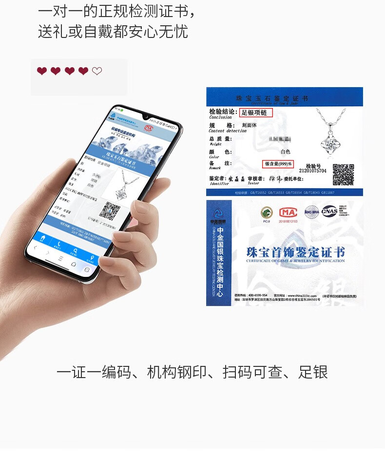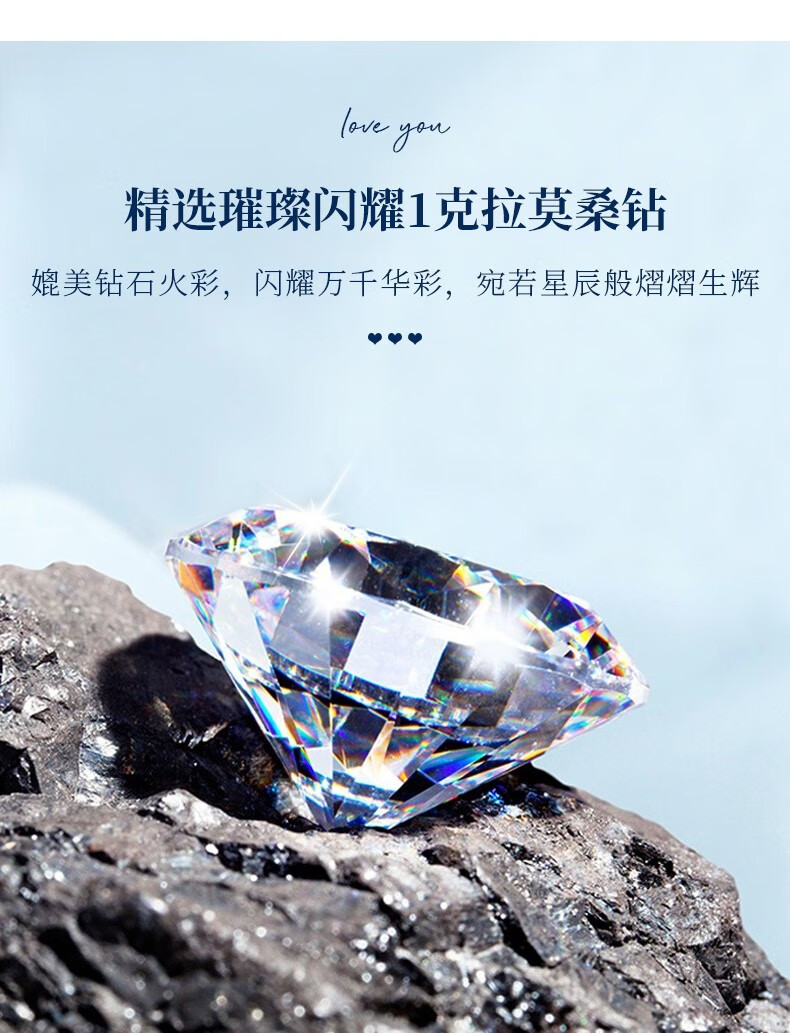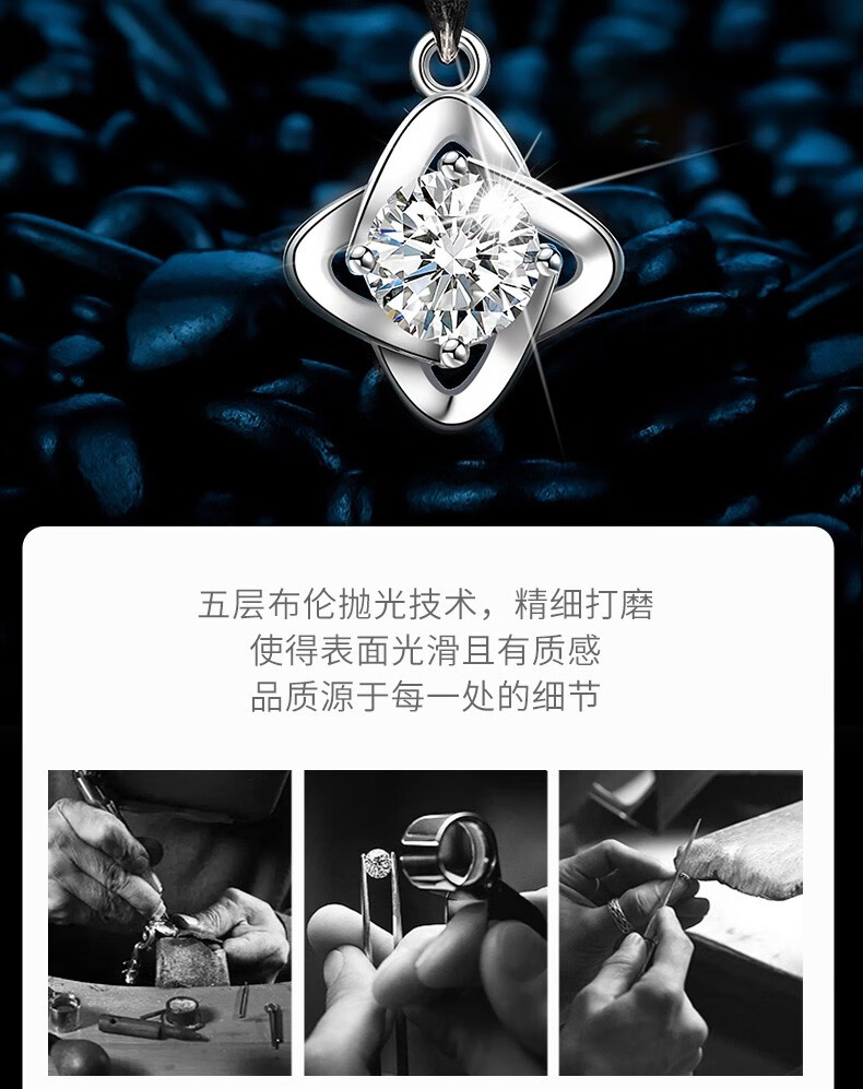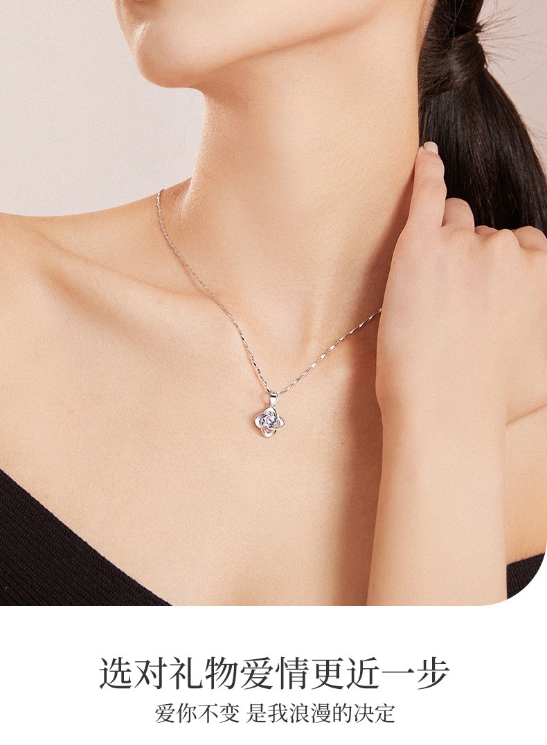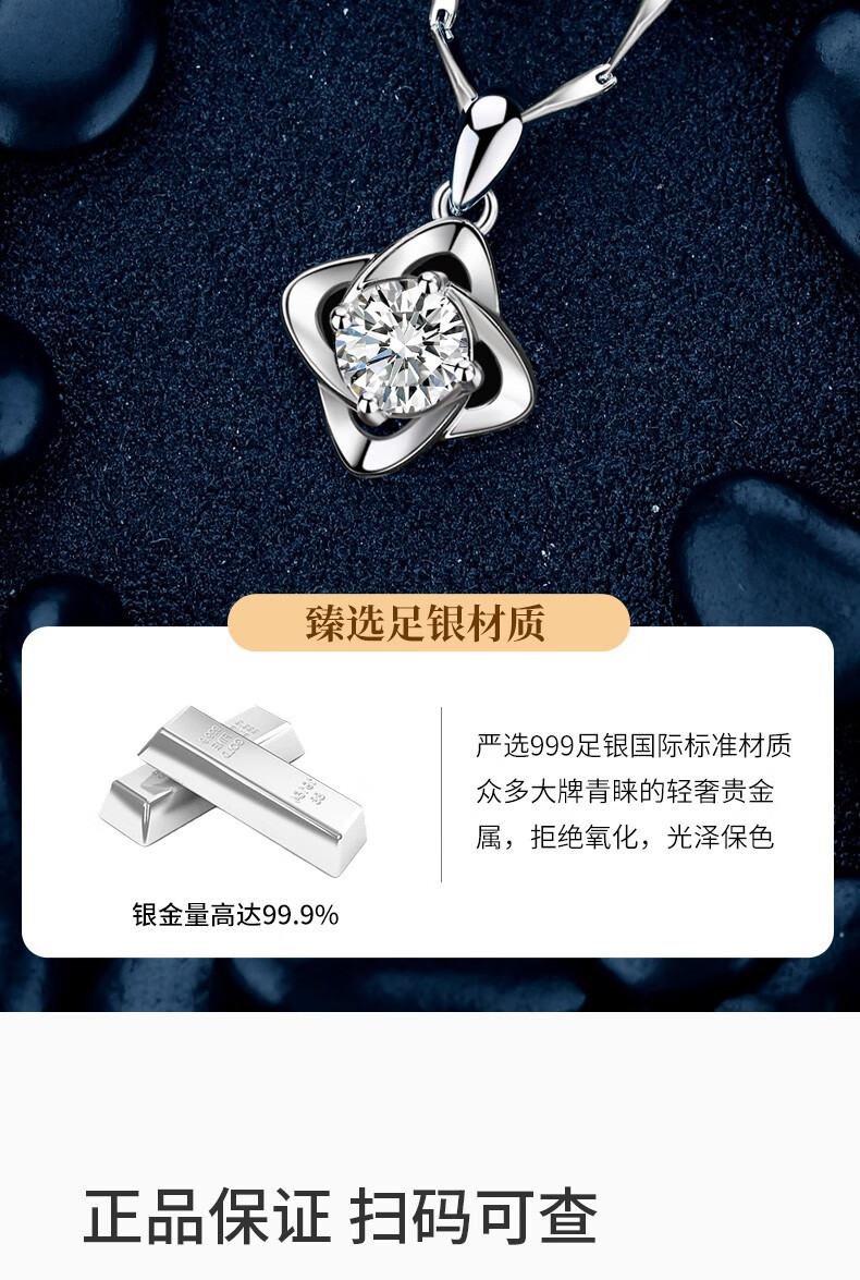 爱心东东恋晴足银四叶草项链女士莫桑钻石吊坠端午情人节礼物送女友老婆生日一克拉莫桑钻四叶草项链+花盒