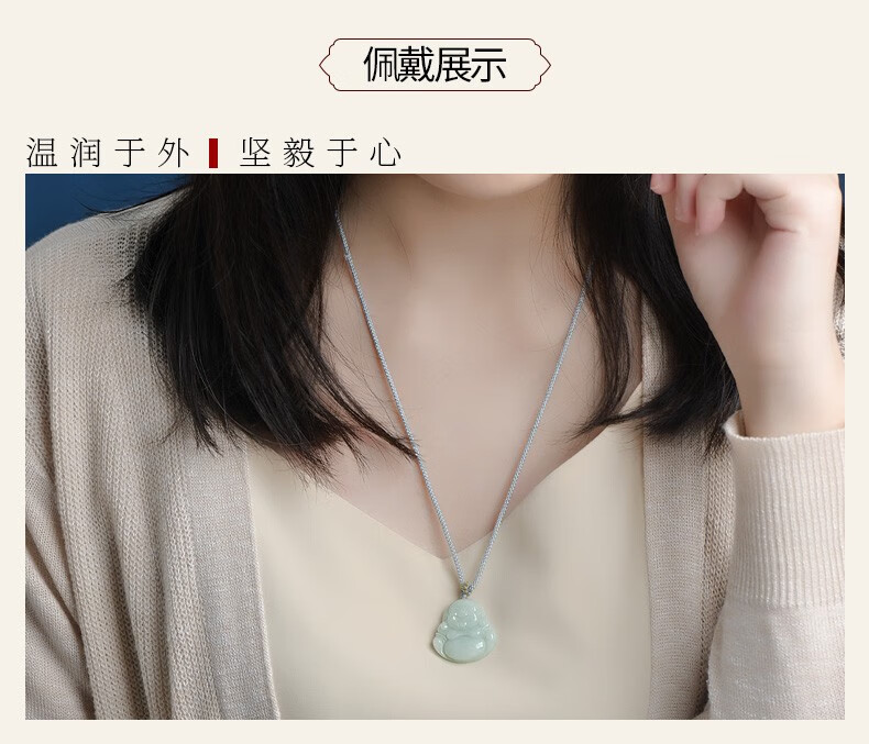 可玉可求翡翠笑佛吊坠翡翠玉佛弥勒佛公玉坠女款玉石项链挂坠款一KY0095