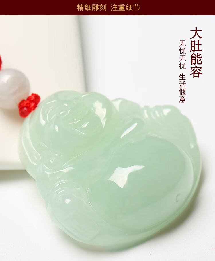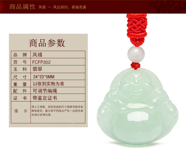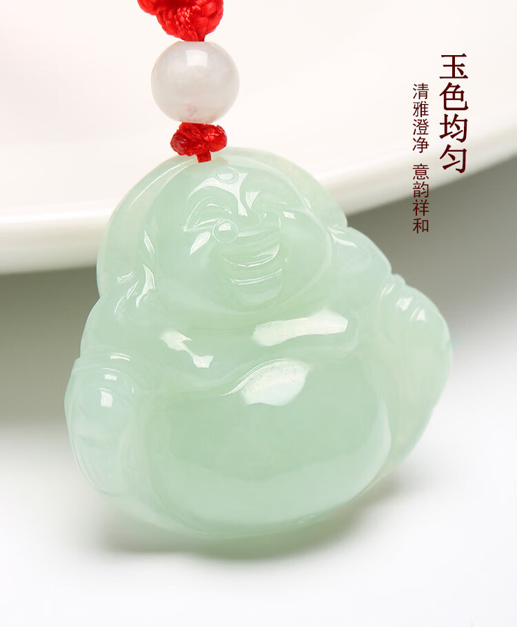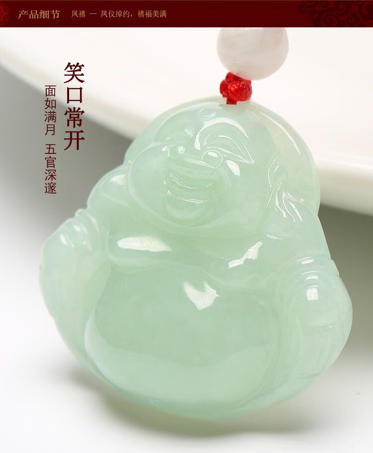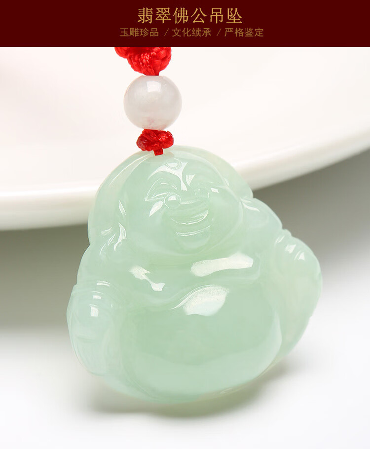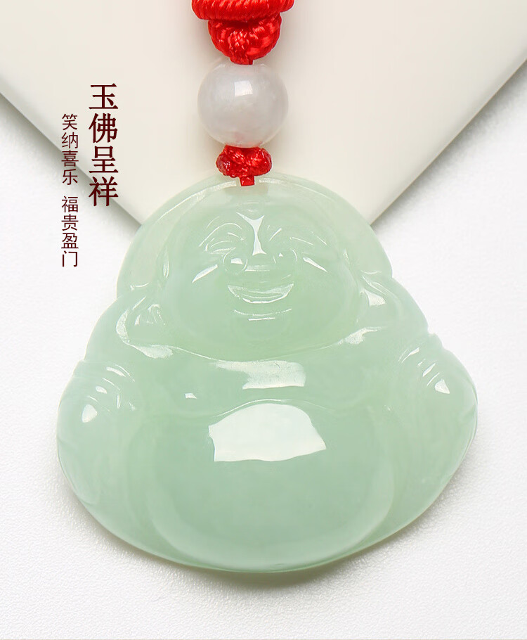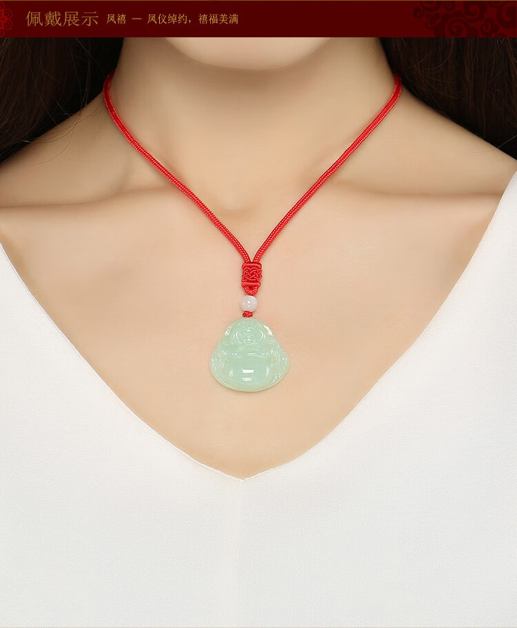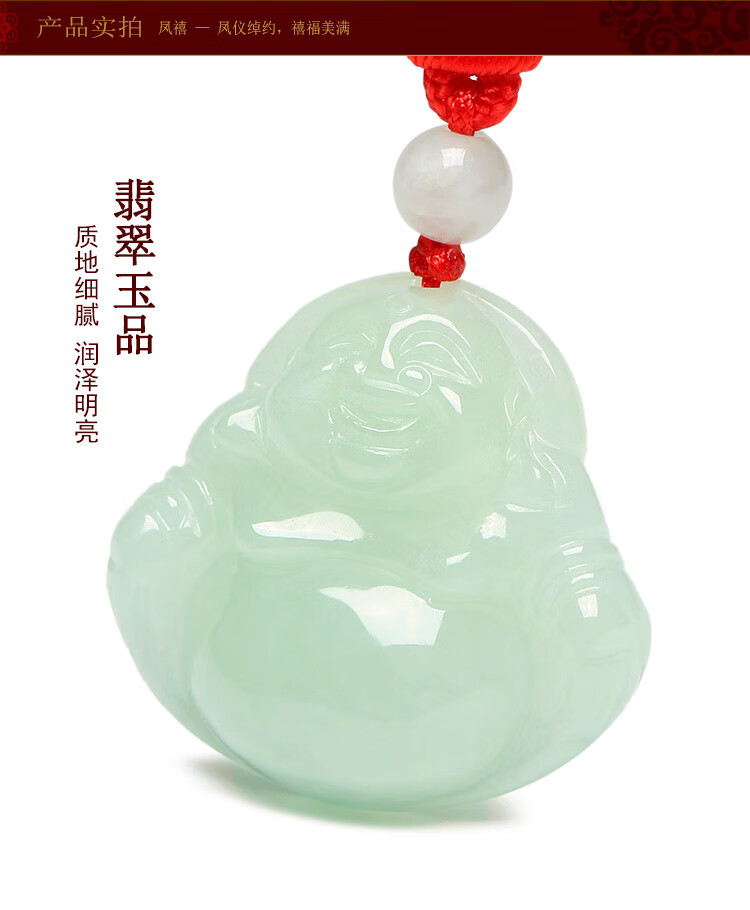 凤禧珠宝翡翠玉佛吊坠弥勒佛公玉坠女款玉石项链生日节日礼物