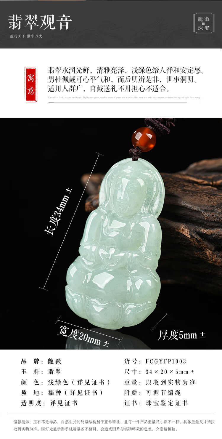 龍徽翡翠玉观音吊坠菩萨玉坠玉石项链挂件玉器玉佩父亲节礼物