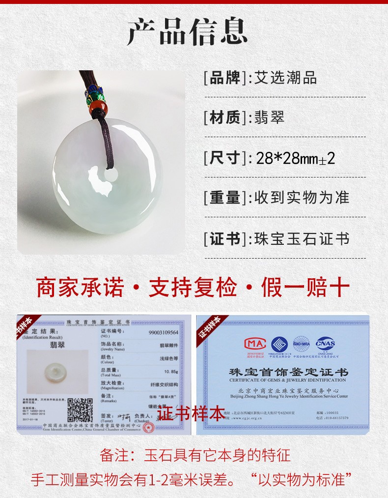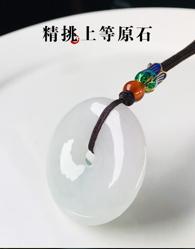 艾选潮品缅甸A货翡翠吊坠平安扣玉吊坠男女款玉石玉坠生日礼物送女朋友翡翠平安扣