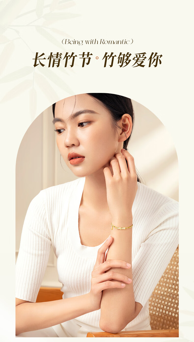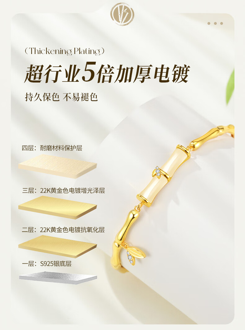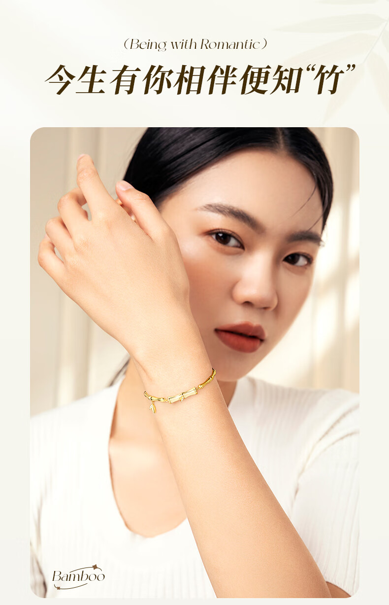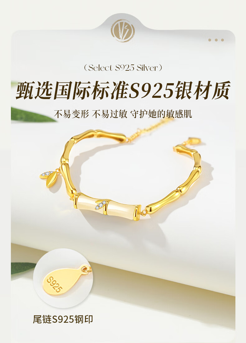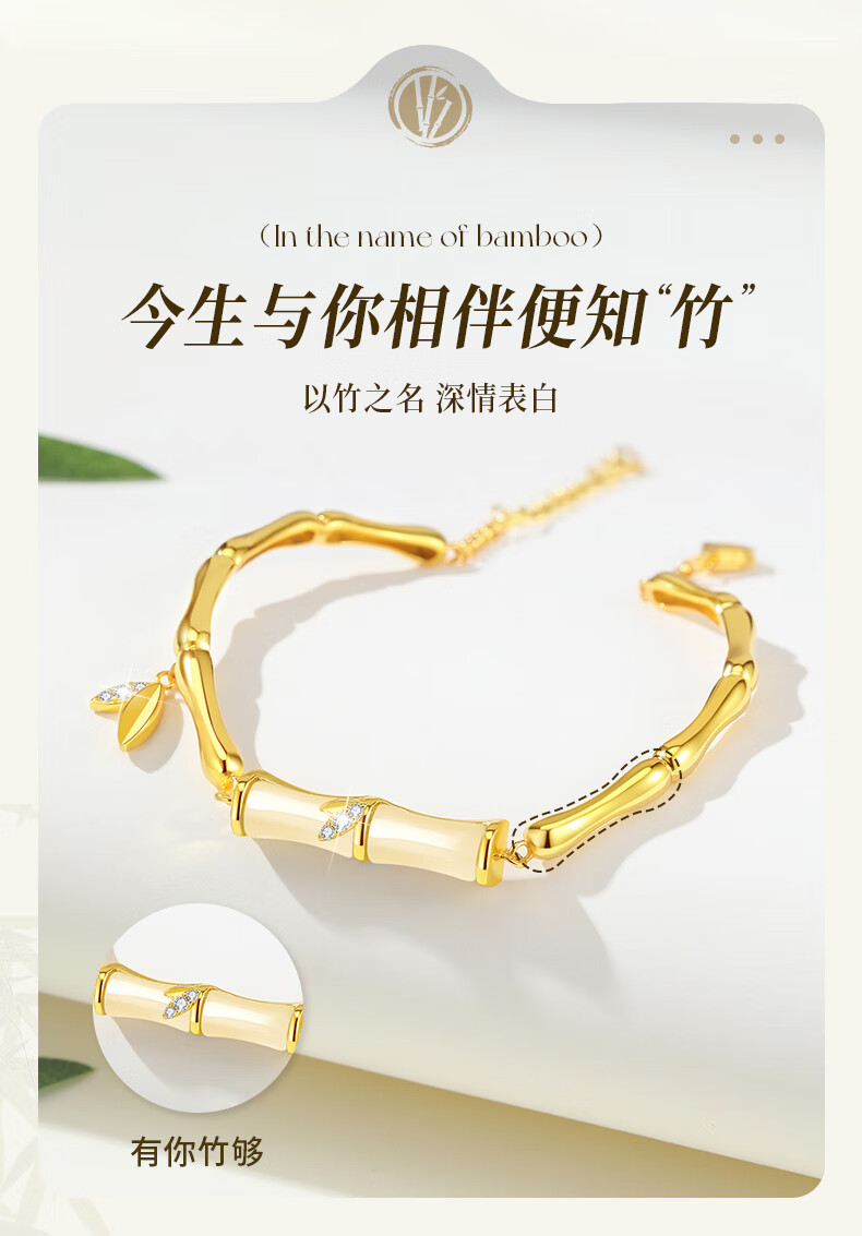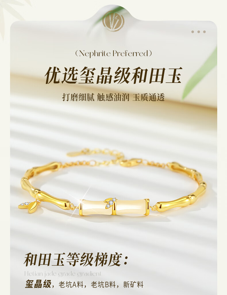 央创时尚【中国黄金】有你"竹"够和田玉银手链女生日礼物送女友老婆首饰品【精选和田玉】有你“竹”够手链