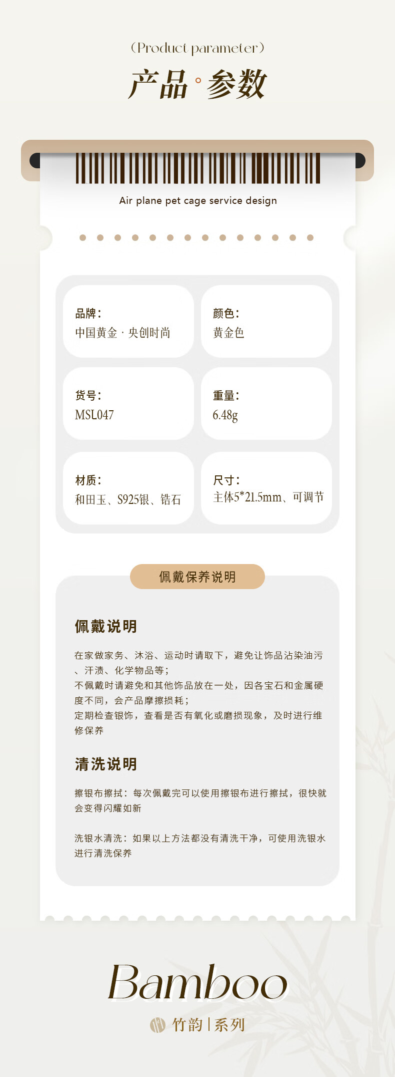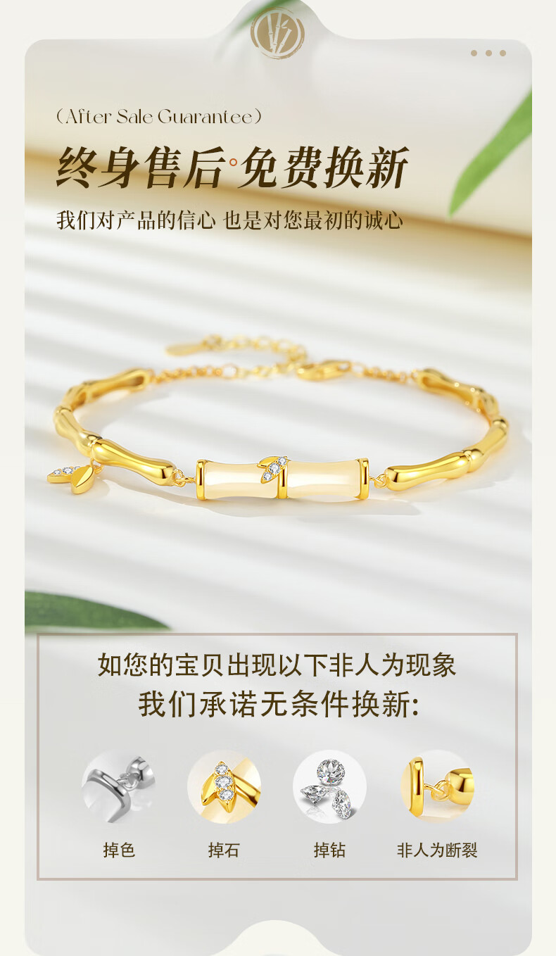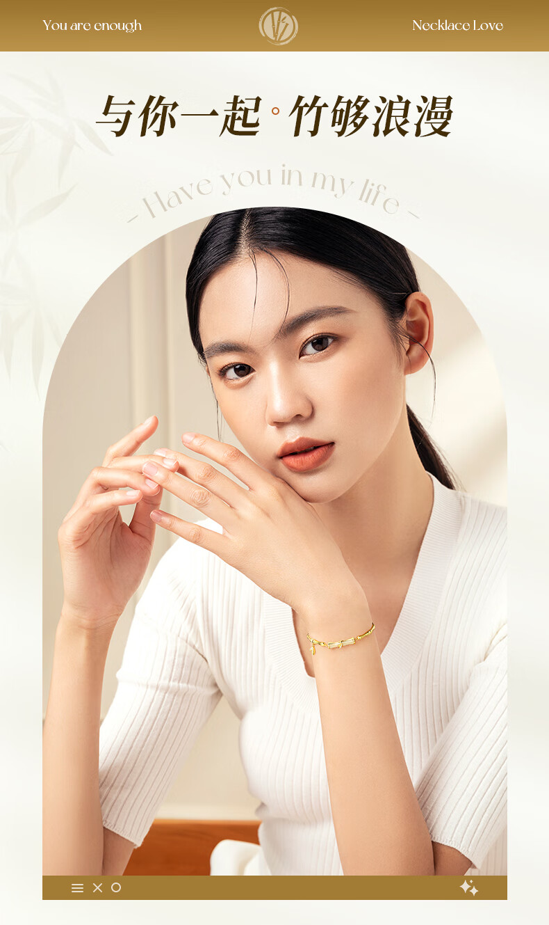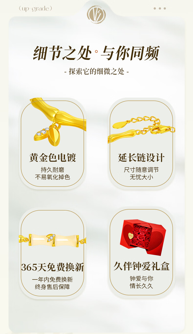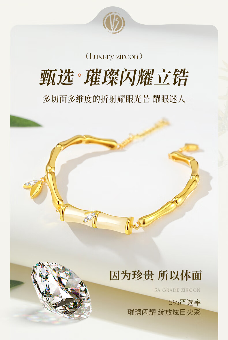 央创时尚【中国黄金】有你"竹"够和田玉银手链女生日礼物送女友老婆首饰品【精选和田玉】有你“竹”够手链