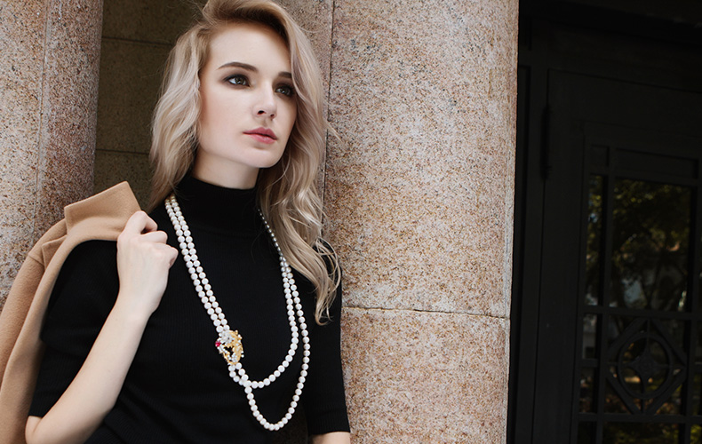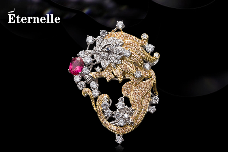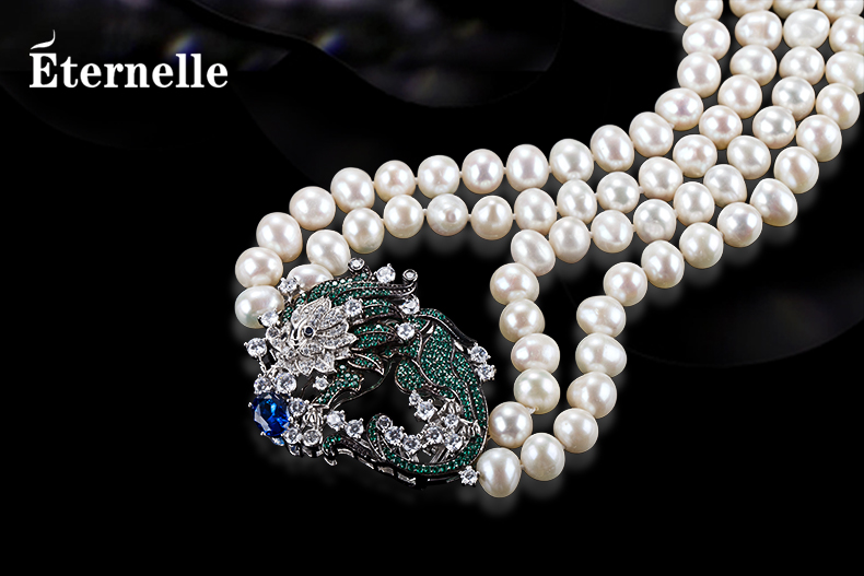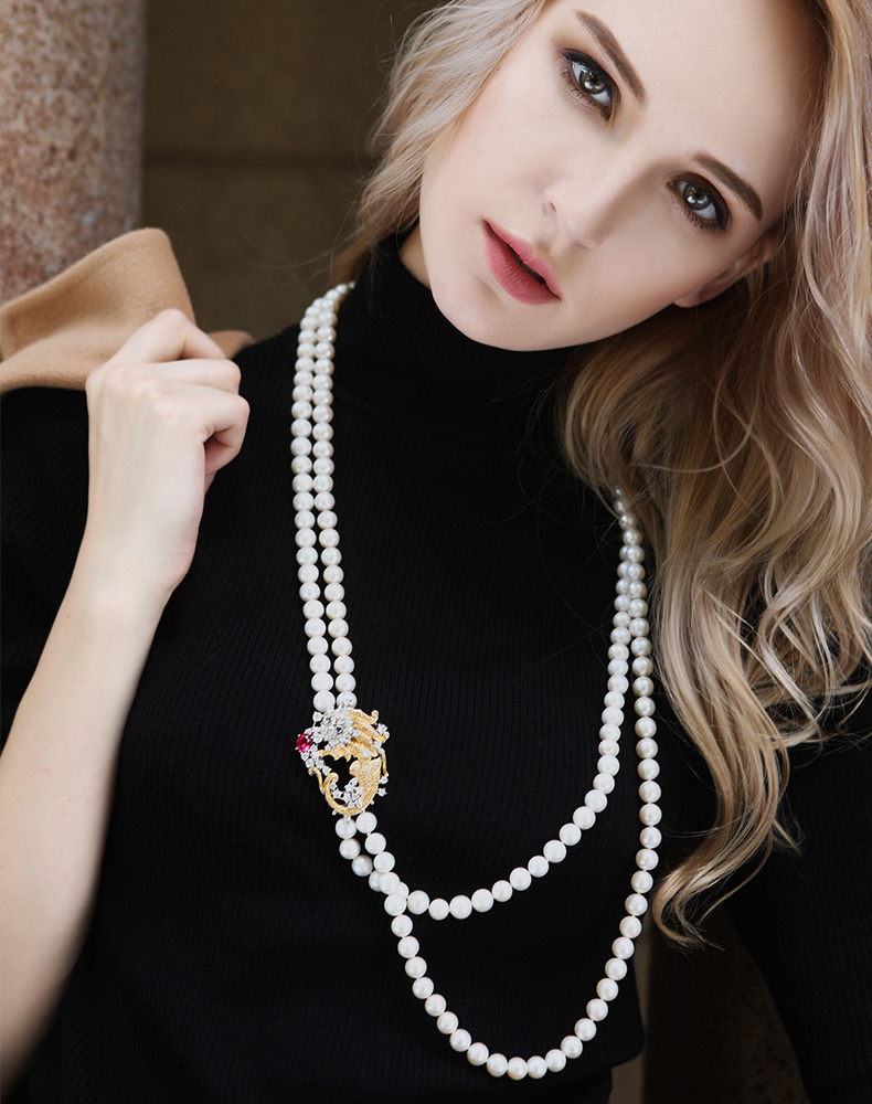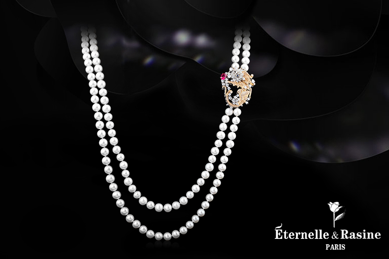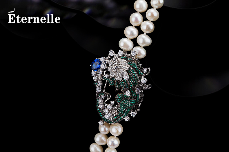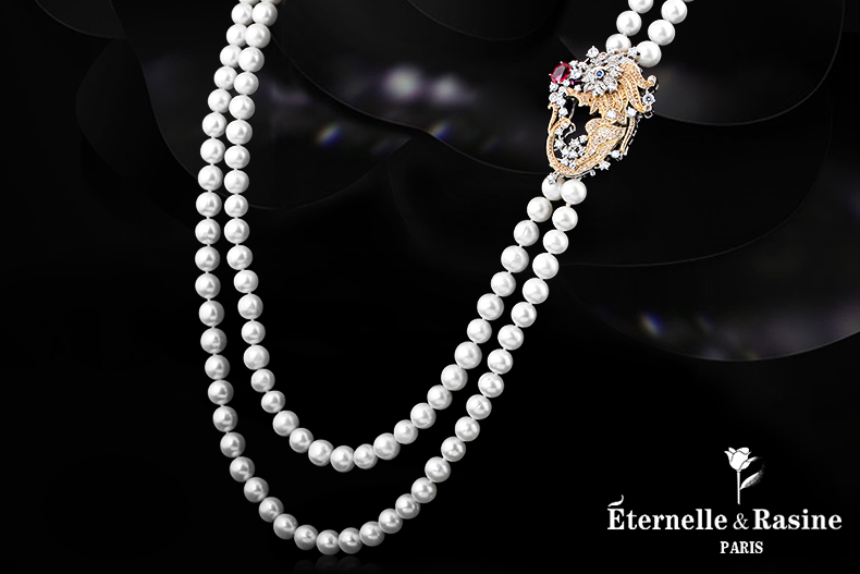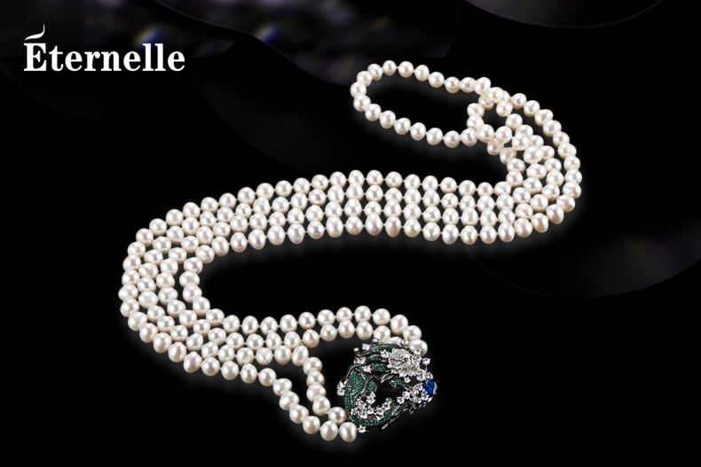 Eternelle法国永恒欧美高档胸针珠宝款大衣胸花淡水养殖珍珠毛衣链女璀璨金色
